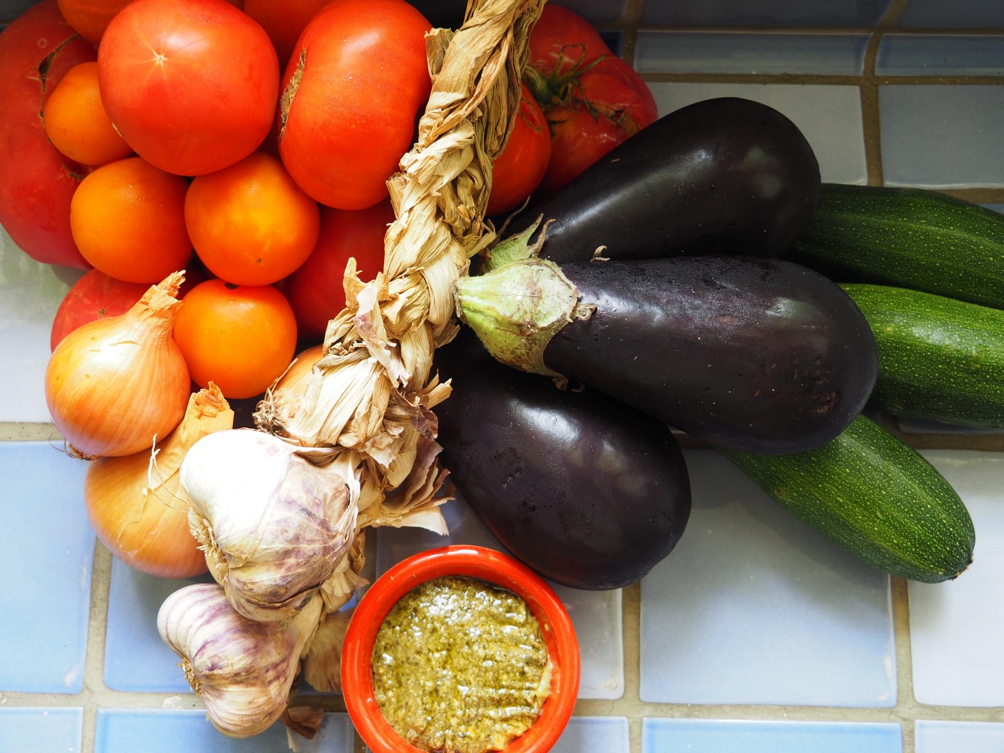 L’aubergine est, avec la tomate et la courgette, l’un des légumes d’été phares du Sud-Ouest. Il y a tellement de variations possible. Comme ça, lorsque vous mettez le four en route pour cuire des tranches d’aubergine, l’idéal est de couper en longueurs et ronds pour plusieurs repas en fonction des recettes que vous souhaitez préparer par la suite. C’est pareil pour la sauce tomate qui s’utilise dans plusieurs de mes recettes et peut également se congeler. Ça fait gagner du temps et d’électricité !