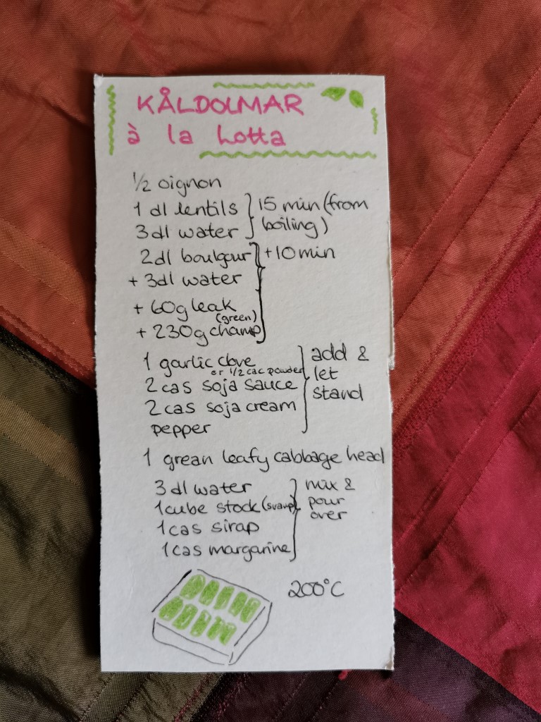 Le Kåldolmar – de chou farci – est un plat traditionnel suédois que j’adore. Comme c’est une recette qui prend un peu de temps à réaliser et qui peut se préparer en avance, je prépare les kåldolmar quand il y a des invités et souvent pour deux repas. Certes, ce n’est pas un plat très rapide, mais le travail en vaut la peine.