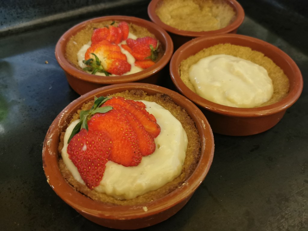 C’est également possible de préparer des ramequins ou des galettes pour garnir après cuisson avec une crème pâtissière rapide et des agrumes ou des fraises.