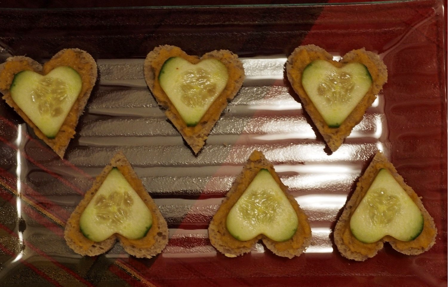 Tartiner et mettre une tranche de concombre, un morceau de poivron, une demi-tomate cerise ou une petite feuille de roquette dessus ou simplement dans un bocal pour l’emmener chez des copains avec une baguette pour l’apéro !
