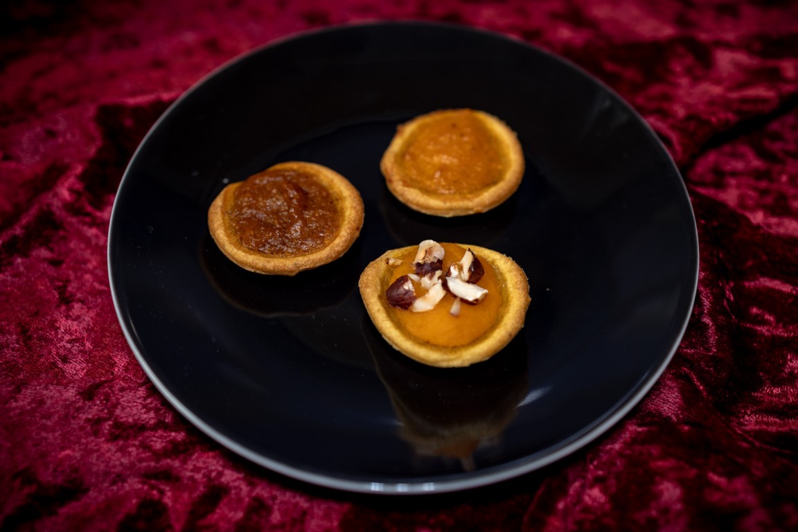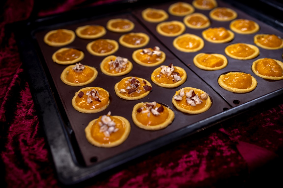 Etaler la pâte assez fine. Faire des ronds d’environ 5 cm. Placer soit dans un moule à tartelettes ou directement sur la feuille de cuisson. Remplir avec la mélange de courge.