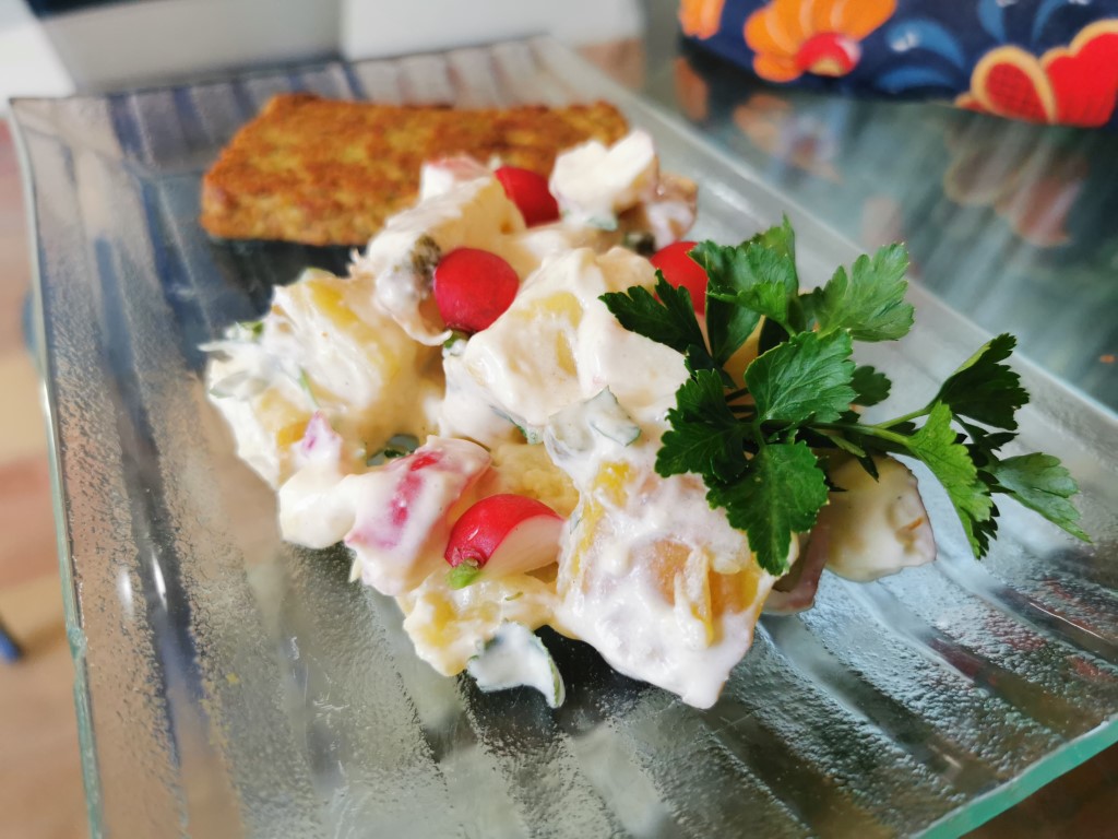 - Cuit en tranches avec des patates cuits à l’eau et une béchamel aux carottes/cannelle ou une béchamel aux oignons « löksås » ou avec une Salade de patate